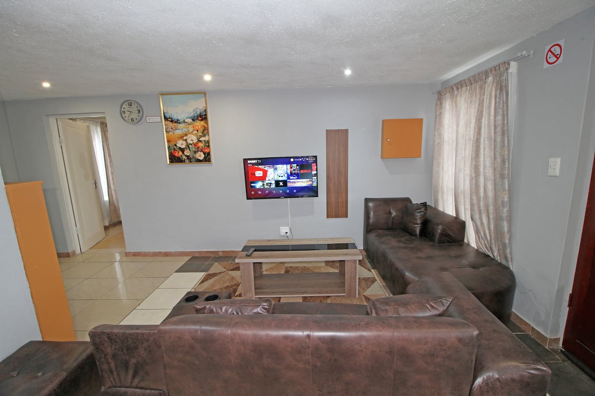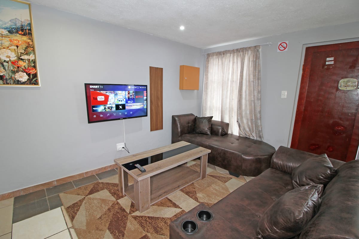 Located at a walking distance to shopping centers and restaurants, 5 Kms from Rand airport, 20 minutes' drive to OR Tambo International Airport & closed to many other amenities.